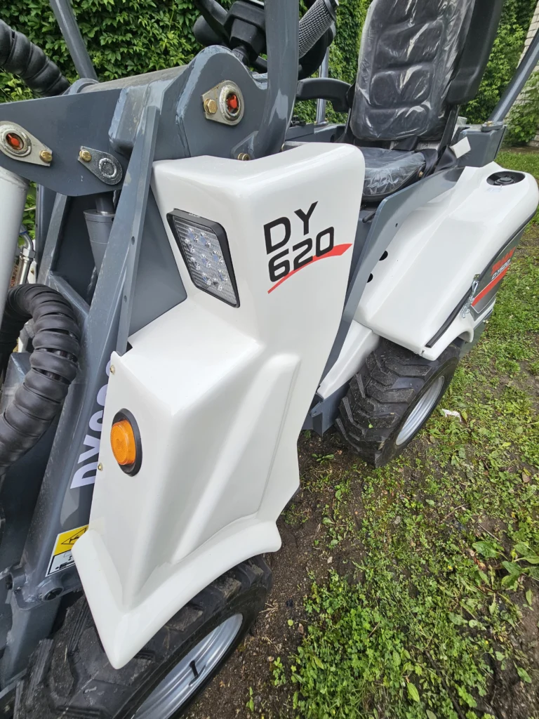 Гидростатический привод, 4 колесных гидромотора, DBS (система динамической блокировки колес при застревании и пробуксовке), тяга в любых условиях (дождь, снег, грязь), повышенный ресурс шин по сравнению с бортовыми минипогрузчиками, шины не портят рельеф (низкий показатель давления на грунт (в 3 раза ниже чем в погрузчиках с бортовым поворотом).